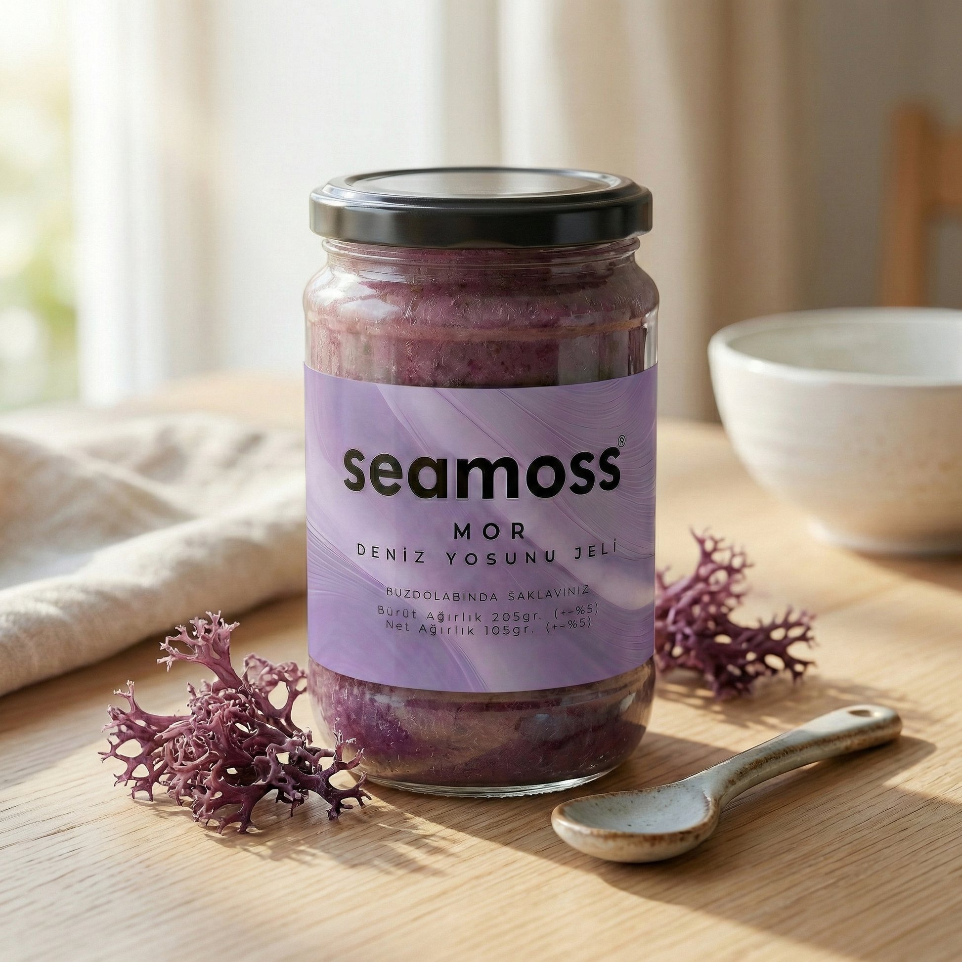 Purple Sea Moss (Mor İrlanda Deniz Yosunu) Yüksek lif içeriği ve partiküler yapısıyla daha yoğun bir ürün olarak bilinmektedir.